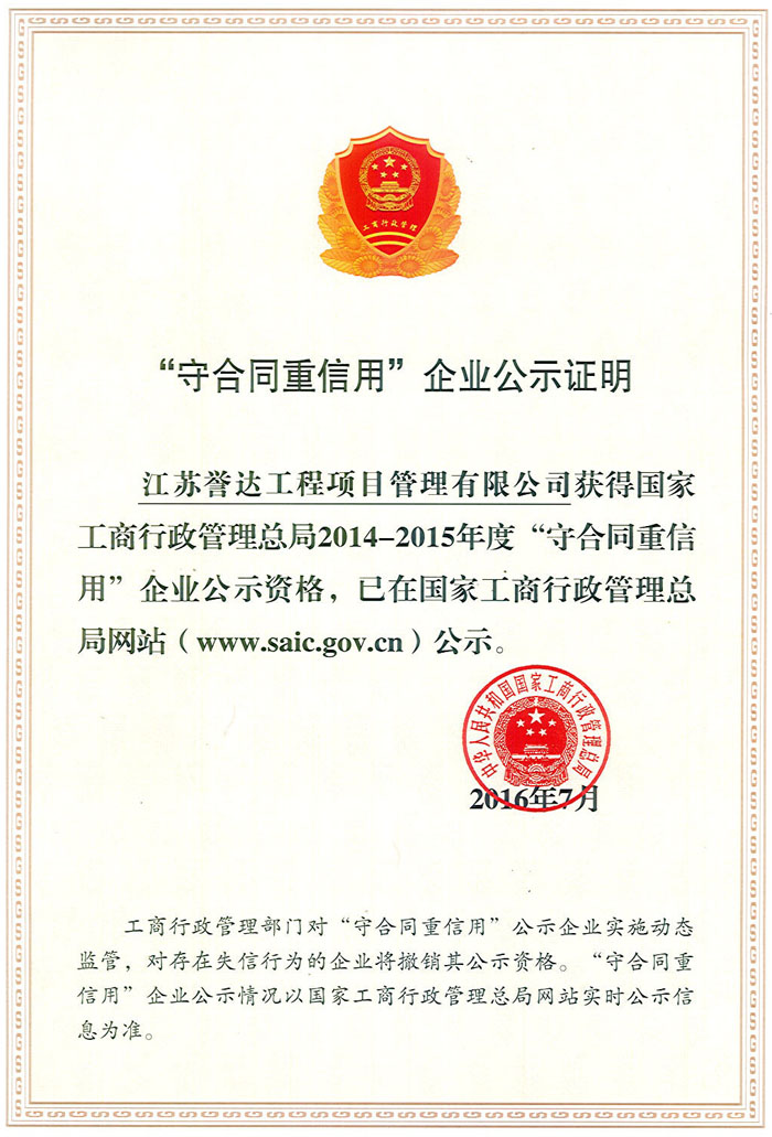 我公司成立于1996年,注冊資金6000萬元,公司有關(guān)資質(zhì)為:工程造價咨詢甲級,房屋建筑工程監(jiān)理甲級,市政公用工程監(jiān)理甲級,人防工程監(jiān)理甲級,電力工程監(jiān)理乙級,水利水電工程監(jiān)理乙級,公路工程監(jiān)理乙級,文物保護監(jiān)理乙級,招標代理資質(zhì)、政府采購代理資質(zhì),工程咨詢資質(zhì)。公司于1999年被江蘇省建設(shè)廳命名為省級先進監(jiān)理企業(yè)、2005年及2009年獲江蘇省建設(shè)廳優(yōu)秀監(jiān)理企業(yè),2008年獲江蘇省監(jiān)理協(xié)會“建設(shè)監(jiān)理發(fā)展二十周年工程監(jiān)理先進企業(yè)”,2009年及2014年3月獲泰州市建設(shè)局“建設(shè)工程監(jiān)理工作先進單位”。2001年至2012年連續(xù)十二年獲泰州市重合同守信用企業(yè)。 [ 查看詳情 ]